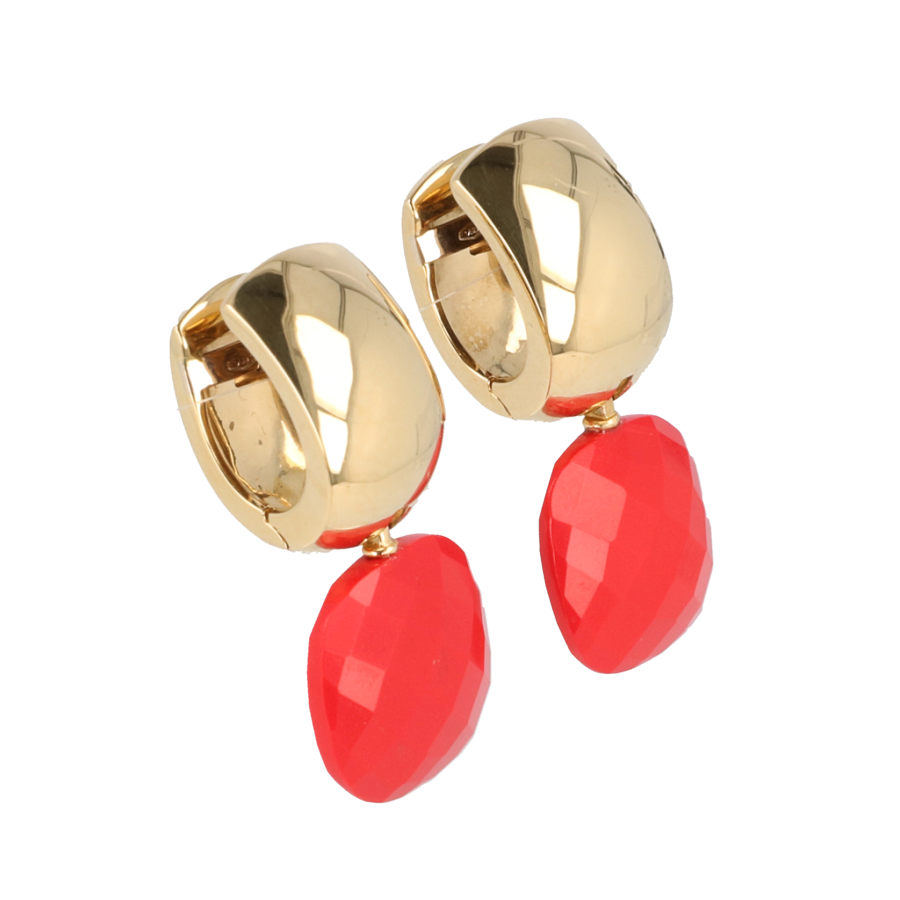 Varivello Creolen Bold Medium met Rood Koraal | 18krt. Geelgoud