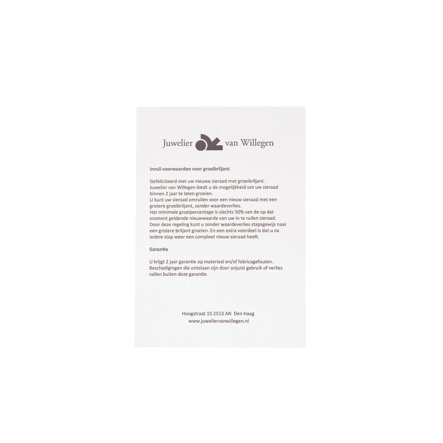 Als u een sieraad uit onze W | Double You Collectie aanschaft, krijgt u daar een certificaat bij.